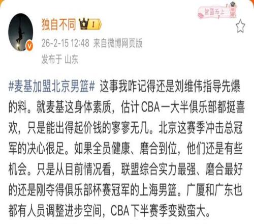 麦基合同曝光!媒体人:只有北京首钢出得起